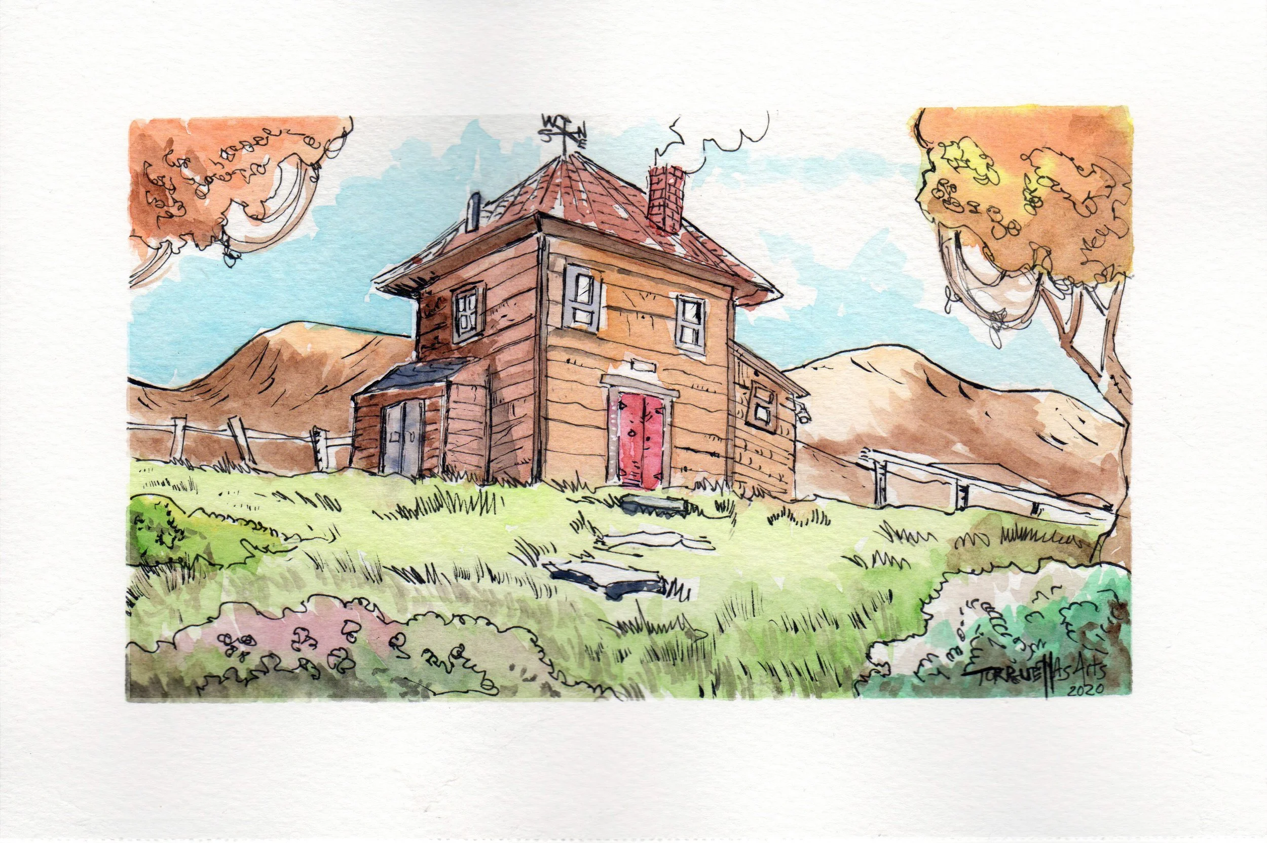 Old house. Size: 6 in X 9 in. Medium: Watercolor, black inks. Media: Watercolor painting